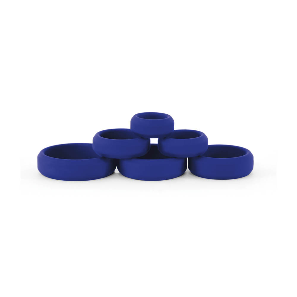 Super elastic silicone rings. Six sizes for varied levels of climax control. Mini: 1.5 x 1.5 x 0.5 inch - 3.8 x 3.8 x 1.2cm. Sm: 1.6 x 1.6 x 0.5 inch - 4.0 x 4.0 x 1.2cm. Med: 1.9 x 1.9 x 0.5 inch - 4.8 x 4.8 x 1.2cm. Lg: 2.2 x 2.2 x 0.6 inch - 5.6 x 5.6 x 1.5cm. XL: 2.4 x 2.4 x 0.6 inch - 6.0 x 6.0 x 1.5cm. XXL: 2.4 x 2.4 x 0.6 inch - 6.0 x 6.0 x 1.5cm.